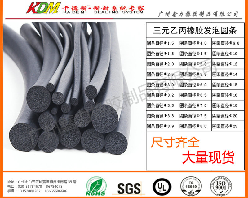 1. 常用材料是三元乙丙橡膠、發泡圓條、海綿圓條、海綿膠繩、采用擠出微波硫化等發泡工藝擠出成型,表面光潔美觀,具有良好的彈性和抗壓縮變形。