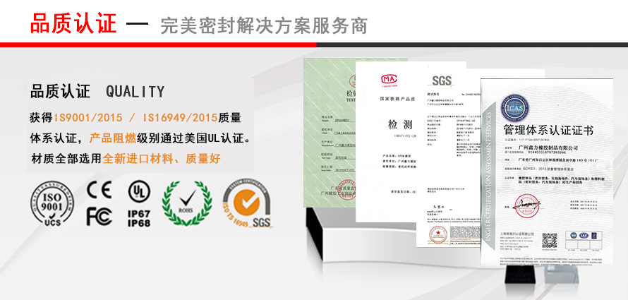 材質品牌: 乙丙膠(美國陶氏、德國朗盛、日本三井等) 硅 膠(南京東爵、江西紅葉、上海道康寧等)