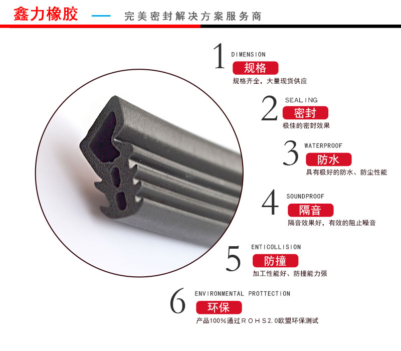 用 途:汽車密封,軌道交通密封,建筑門窗密封,幕墻密封膠條,家具門業密封,航運密封,新能源密封,電器密封,機柜密封,機械密 封等行業的防風、防水、防塵、隔音、密封等作用。